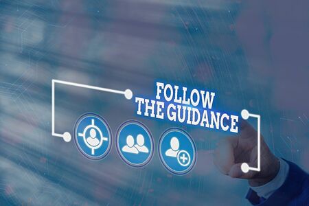Conceptual hand writing showing Follow The Guidance. Concept meaning controlling a course of projectile by builtin mechanism Information digital technology network infographic elements