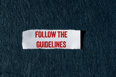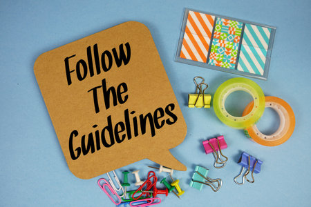Follow the guidelines message written on torn torn paper piece with gray background. Conceptual follow the guidelines symbol. Copy space.