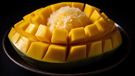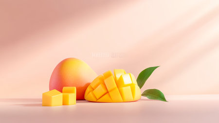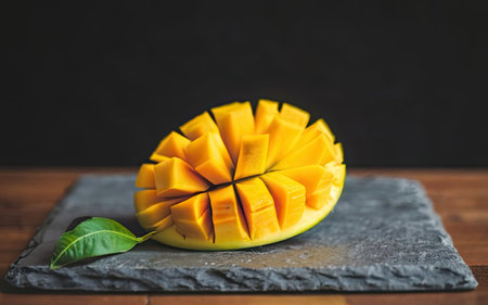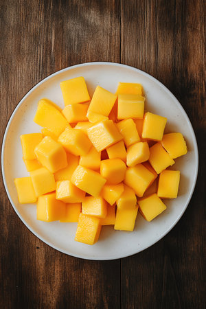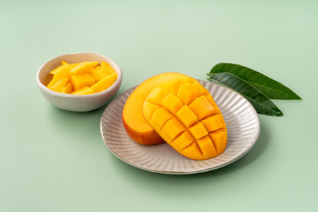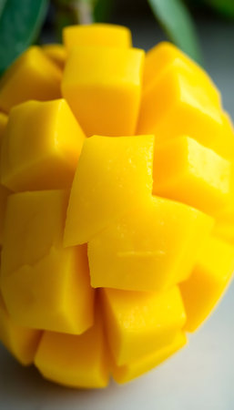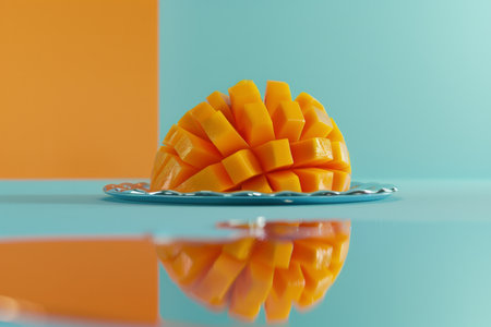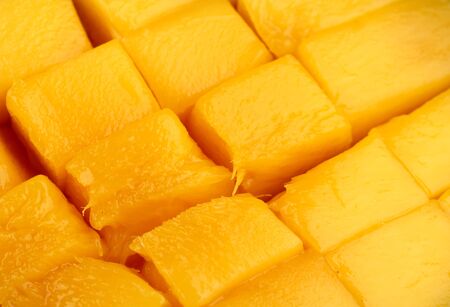 Sweet mango cubes are perfectly cut and gleaming with moisture, showcasing summers bounty.