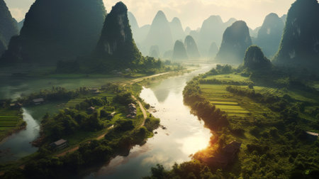 Guilin, China featuring enchanting karst mountains, lush Li river and idyllic natural landscapes that capture timeless beauty and cultural heritage, ideal for travel, tourism and creative projects.