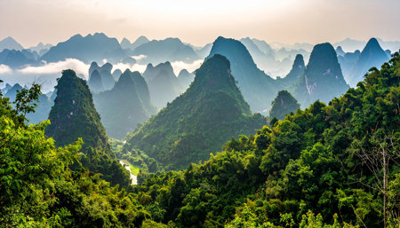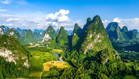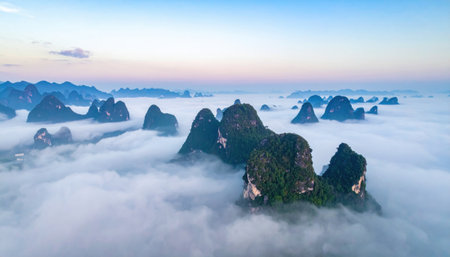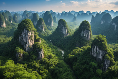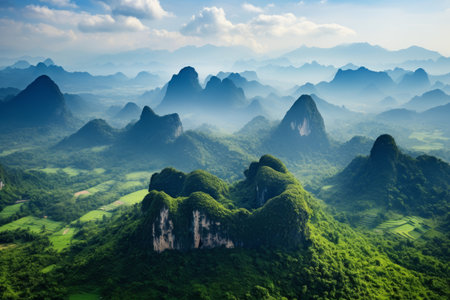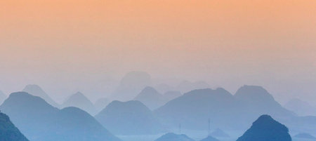 Panoramic view of karst mountains in Guilin, China