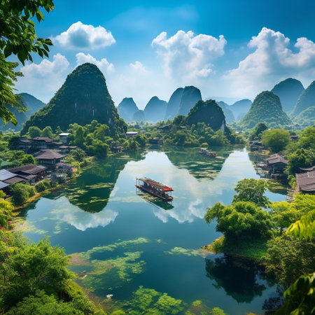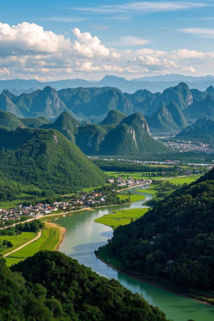 Panoramic view of Guilin's landscape and rural scenery