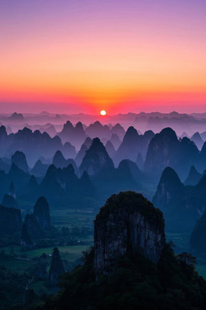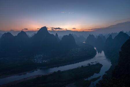 Amazing sunset over the karst landscape of Xingping, Guilin, China