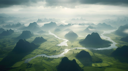 Aerial panoramic view of Guilin's landscape