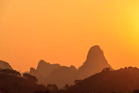Mountain landscape with sunset in china,Guilin.