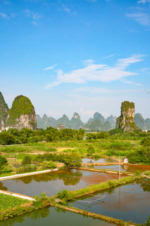 Beautiful karst mountains and rice fields in Yangshuo, Guilin, China