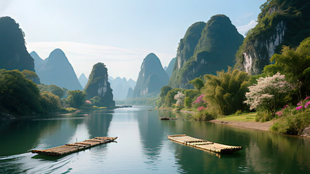 The rural landscape of the Li River in Guilin, Guangxi