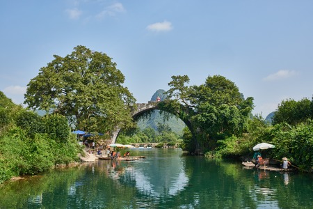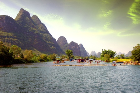 Guangxi, China - September 29 , 2014 : Yulong river between Guilin and Yangshuo in Guangxi province China
