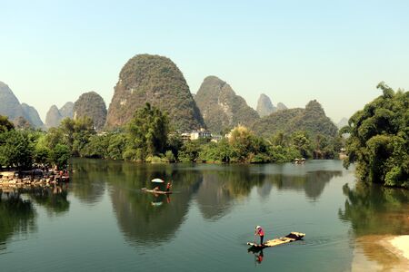 Yu Long river and Karst mountain landscape in Yangshuo Guilin, China. H