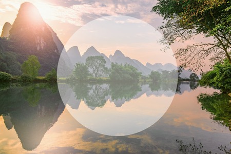 Sunset view of Li River. Yangshuo. Guangxi Province. China. Sample your text.