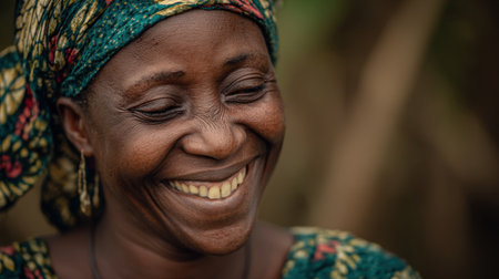 timeless beauty and wisdom of an African senior woman's radiant smile in a close-up face portrait. joy, strength, and resilience that come with age positive aging