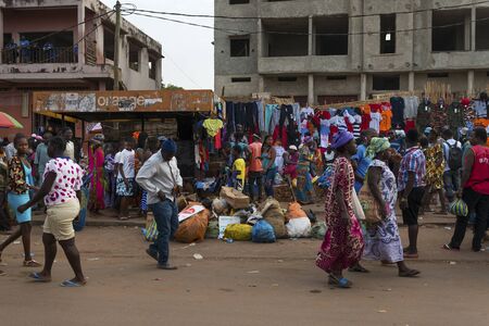 Bissau, Republic of Guinea-Bissau - January 28, 2018: Street scene in the city of Bissau with people at the Bandim Market, in Guinea-Bissau, West Africa