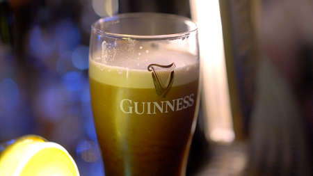 Fresh cold Guinness beer at an Irish Pub in Dublin - DUBLIN, IRELAND - APRIL 20, 2022