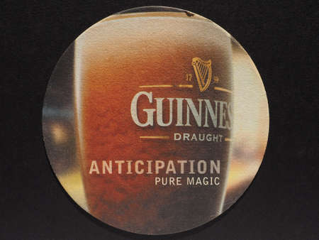 DUBLIN, IRELAND - DECEMBER 11, 2014: Beermat of Irish beer Guinness