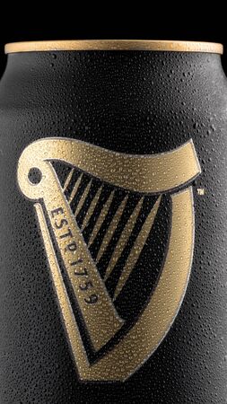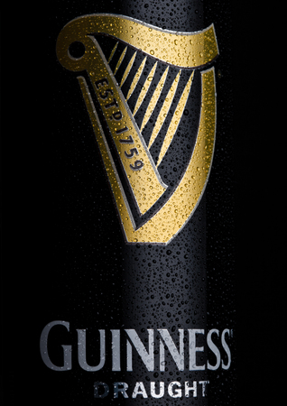 LONDON, UK - JANUARY 20, 2018: Aluminium can of Guinness draught beer on black background with dew. Guinness beer has been produced since 1759 in Dublin, Ireland.