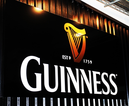 Dublin, Ireland - 30 March, 2013 - Guinness logo at the entrance to Guinness Storehouse Hop Store , a major tourist attraction located at St Jamess Gate Brewery