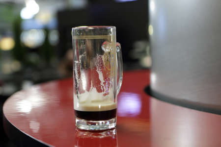 Glass of dark beer on the bar counter in a pub or restaurant