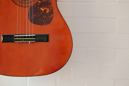 Photo fragment classical guitar on a light brown background