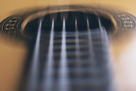 detail of classic guitar with shallow depth of field