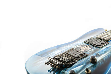 Electric guitar detail shots over white backdrop