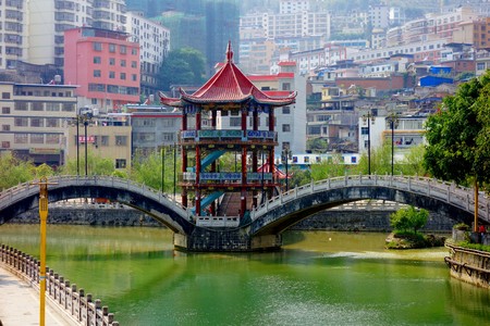 Anshun Bridge in the provincial capital of Chengdu in Sichuan, China