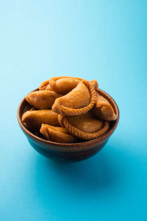 Gujiya - sweet dumplings made during the festival of holi and diwali, selective focus