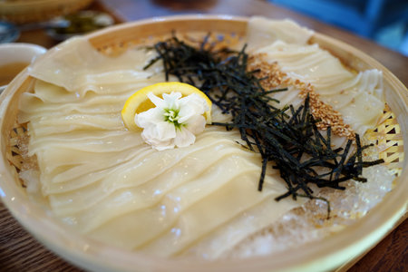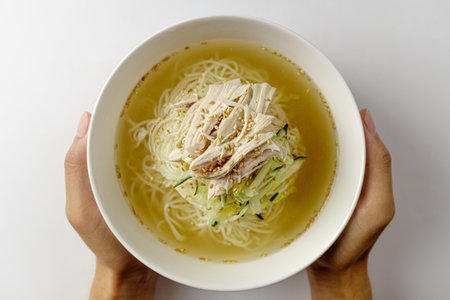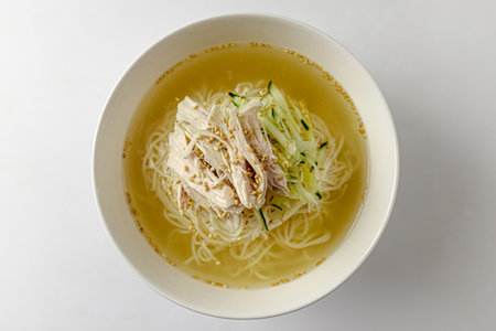 Noodles with Chicken. Noodles in cold soup. Korean food culture