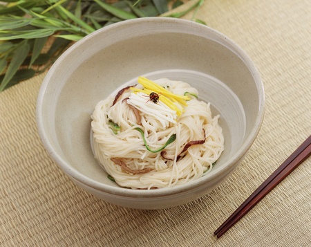 Korean Janchi Guksu Refers to Noodles Eaten on Feast Days. It is a dish made with Noodles in a Hot Clear Soup and Various Toppings.