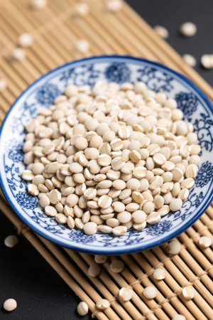 Chinese cuisine, a bowl of peach gum. Peach Gum is Chinese traditional drink that contains peach gum, bird nest, red dates, snow fungus, goji berry, and rock sugar.