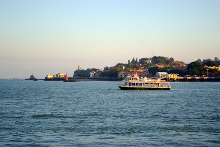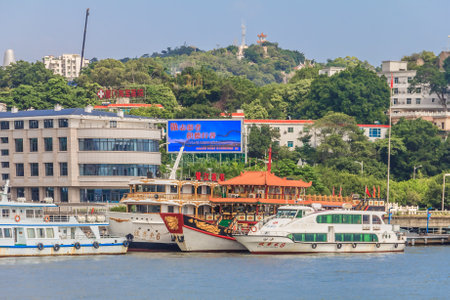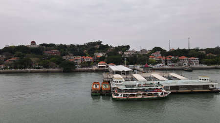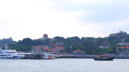 Gulangyu, China - September 14, 2013: Boats and city skyline on Gulangyu Island