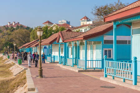 QINGDAO, CHINA - NOVEMBER 15: This is a view of beach huts at the Badaguan scenic area, a popular tourist destination on November 15, 2019 in Qingdao