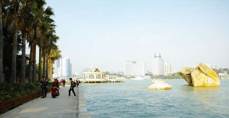 XIAMEN, CHINA: Promenade on pedestrian zone island of Gulangyu