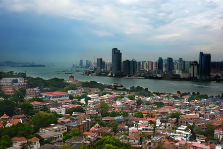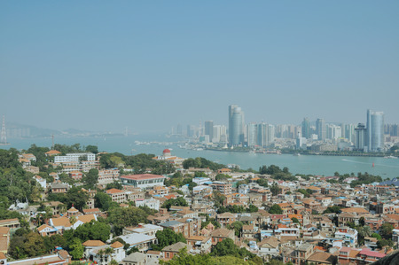 Cityscape of Xiamen from Gulang-yu Island top.