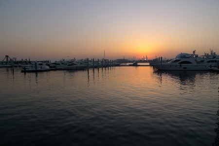 photo of luxury yachts in Dubai during sunset