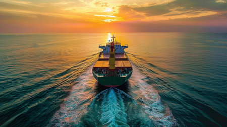 large cargo ship sailing in open sea during sunset, created with generative ai