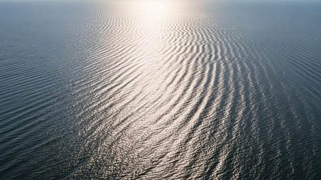 This stunning image showcases gentle ocean waves rippling softly on a calm water surface, reflecting beautiful light and creating a serene atmosphere perfect for relaxation.