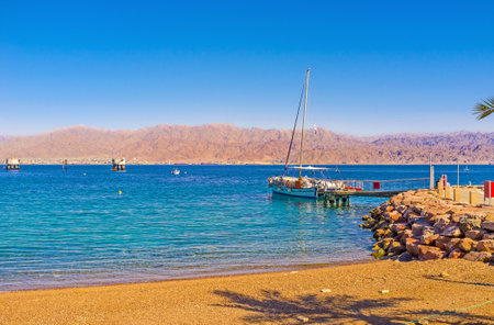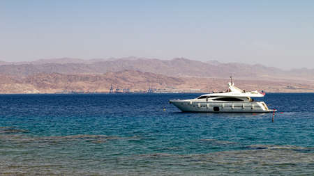 interesting view of Jordan on the red sea with a yacht