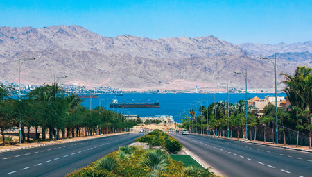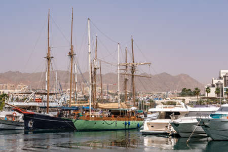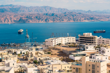 Landscape views of Israeli city Eilat. City of vacations, diving, fishing, Eilat is also critical point of import/export to Israel.