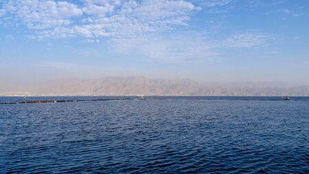 Eilat, Israel - February 9, 2019: View of Aqaba gulf and Eilat town.