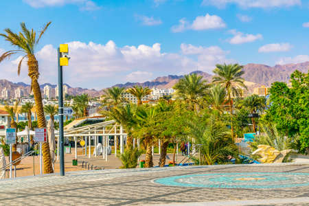 EILAT, ISRAEL, DECEMBER 30, 2018: People are strolling on seaside promenade in Eilat, Israel