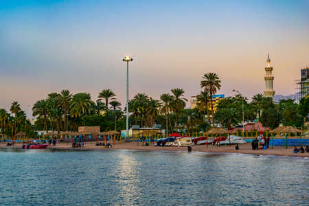 AQABA, JORDAN, JANUARY 5, 2019: Sunset view of seaside of Aqaba in Jordan