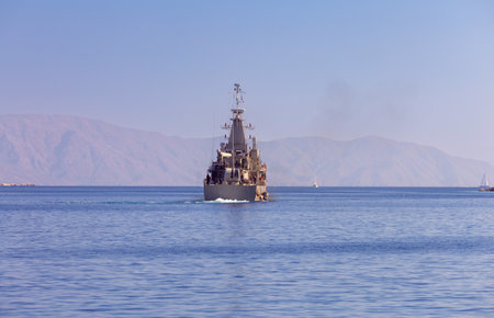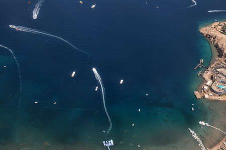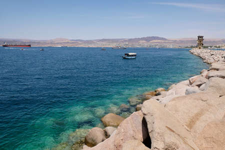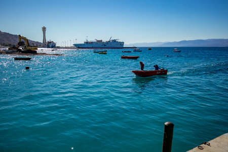 Aqaba, Jordan - circa June 2022: Boats are sailing on Red Sea in Aqaba, Jordan