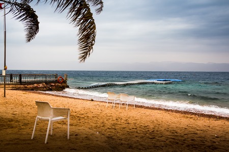 The cozy sand beach, located aside of city center, in district of the Coral Beach Nature Reserve, Eilat, Israel.