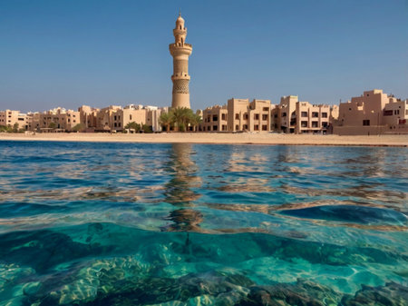 shore of red sea at the morning after restriction mitigation due to coronavirus