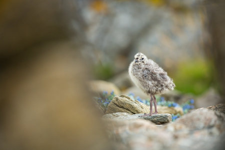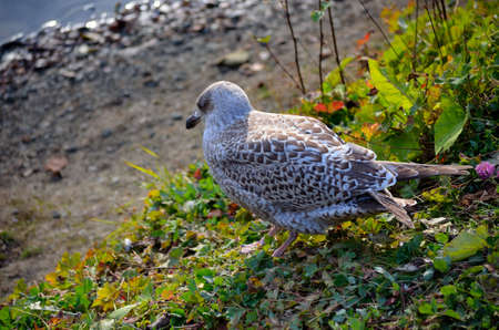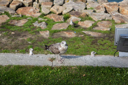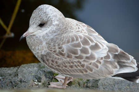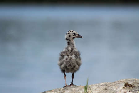 The Common Gull cub. This Common Gull cub is standing confused on a rock