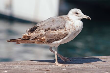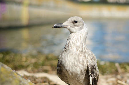 Portrait of Juvenile yellow-legged gull (Larus michahellis) bird in natural environment