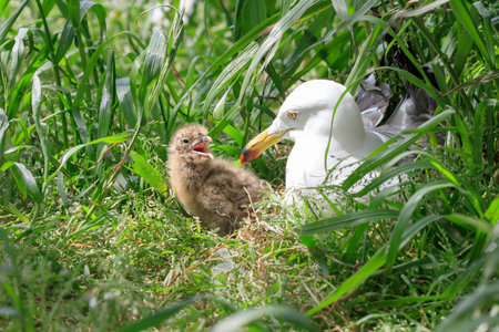 Herring gull (Larus argentatus) killing a Guillemot chick