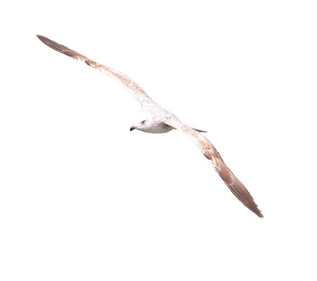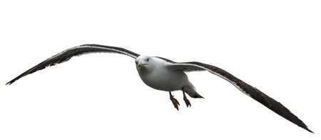 Seagull flying isolated on white background, clipping path included.