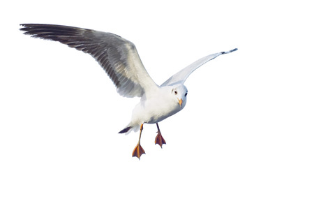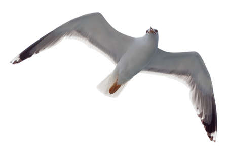 Seagull bird in flight isolated on white background.