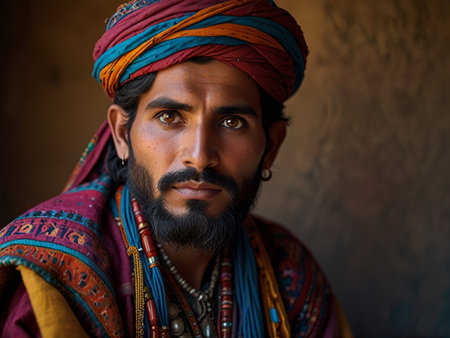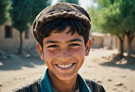 A resident of Afghanistan, this smiling man radiates warmth and happiness, displaying a rich cultural heritage while embracing life. His genuine expression reflects the beauty of his surroundings. AI.
